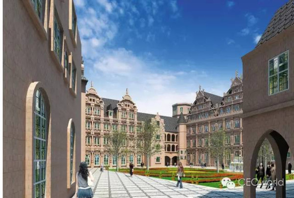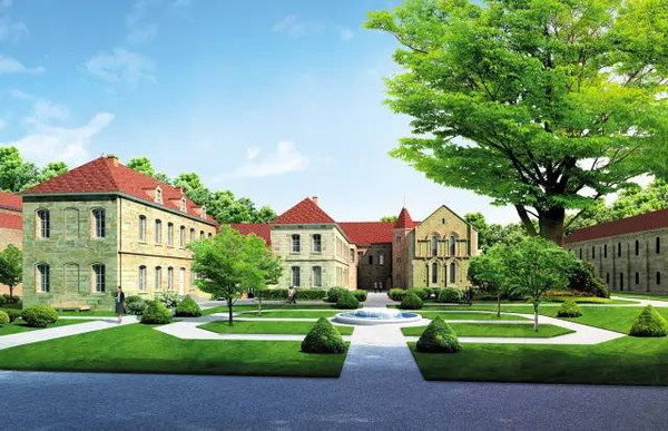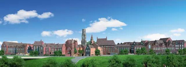 參考在人文科學(xué)上聞名的、在德國具有.悠久歷史的海德爾堡大學(xué)的建筑風(fēng)格,以紅砂巖外墻和傳統(tǒng)街區(qū)構(gòu)成建筑群,布置在小山丘上細(xì)致而雄偉的城堡和網(wǎng)格狀的街區(qū)形成了鮮明的對比.