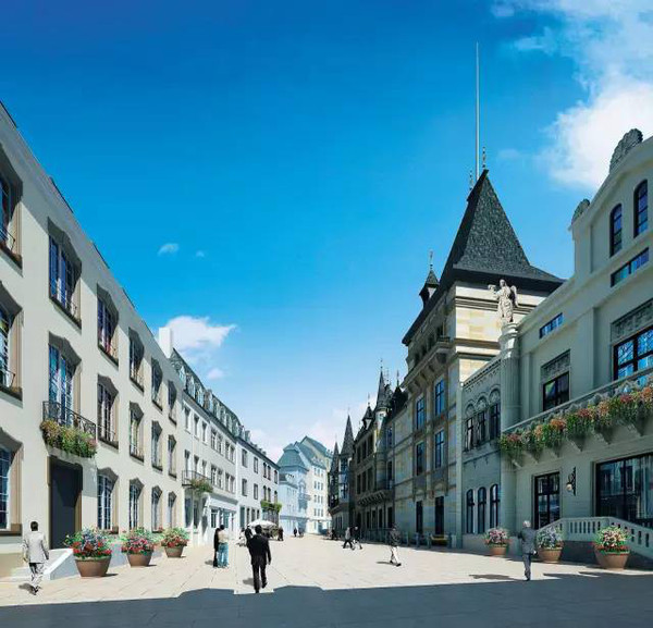 借鑒盧森堡石墻和自然懸崖圍繞的地貌.征,重現(xiàn)有著高低相間地形和錯落有致的街巷.將2~3層建筑布局在基地的低洼部分,4~5層的建筑布置在基地的高地部分,形成"豐富的街路空間",再現(xiàn)一個童話般的小鎮(zhèn).