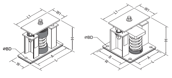 Maintenance checking points: Check the mounting bolts, remain fixed bolt locked, installation of the isolator, and the deflection of the spring.