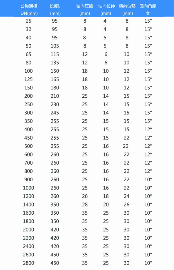 2.1.3可曲撓橡膠接頭的位移性能應(yīng)符合下表2要求。