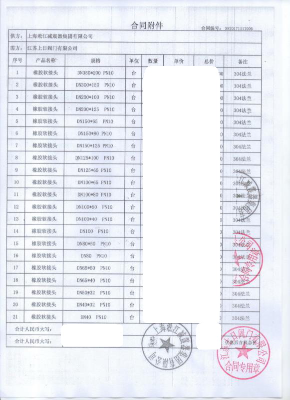 二、【昆山三星電機廢水處理項目】橡膠接頭合同介紹: