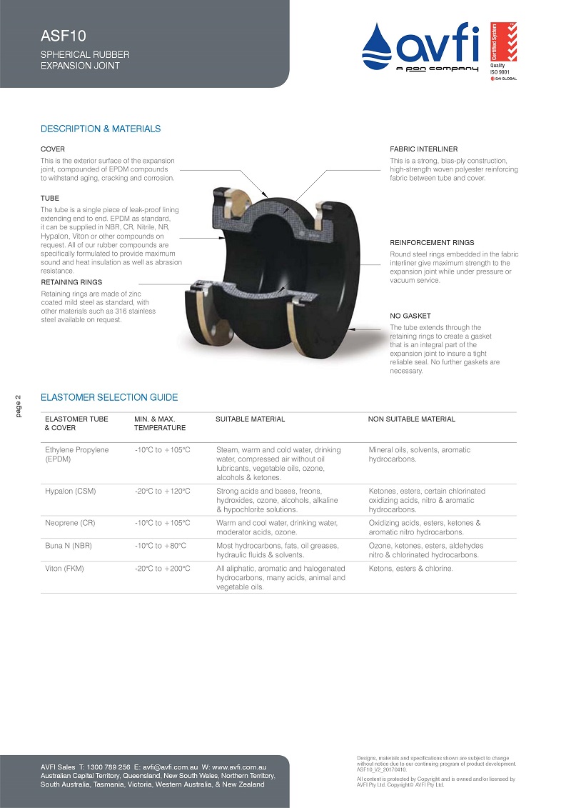 澳大利亞AVFI-ASF10橡膠接頭標(biāo)準(zhǔn)
