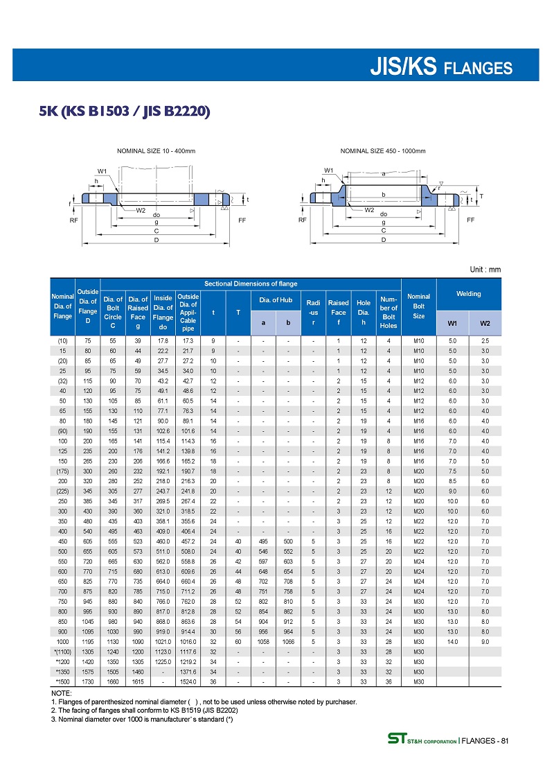 日標橡膠接頭法蘭標準JIS/KS FLANGES 5K 10K 16K 20K 30K