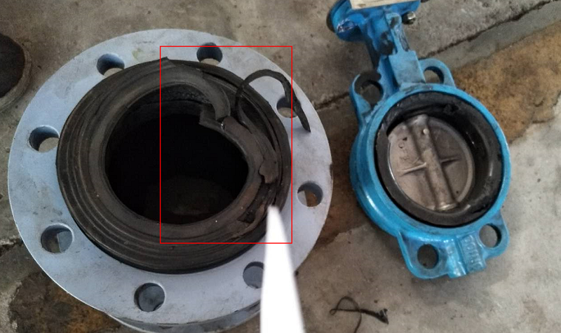 這個(gè)是一個(gè)做無(wú)塔供水設(shè)備的客戶,把對(duì)夾式軟密封蝶閥與橡膠接頭連接在一起后出現(xiàn)的問(wèn)題: