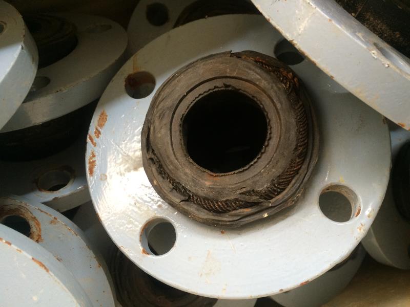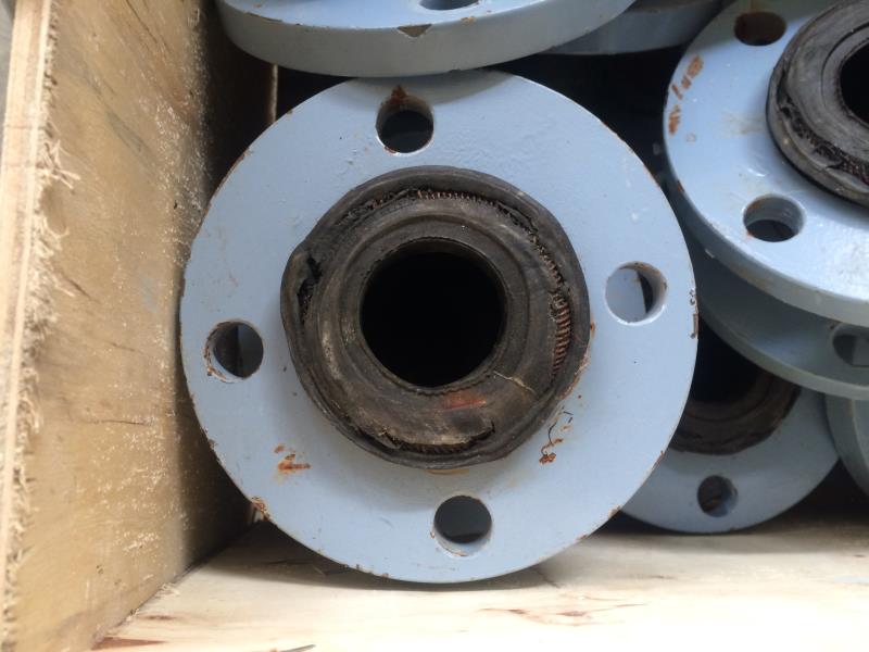如上圖所示,出現(xiàn)這個(gè)情況的,根據(jù)我廠技術(shù)工程師做分析,主要原因是橡膠接頭直接與對(duì)夾式軟密封蝶閥連接,對(duì)夾式軟密封蝶閥密封面過(guò)小,橡膠接頭密封面與對(duì)夾式軟密封蝶閥密封面不配套所致,以下是我廠技術(shù)部提供的一組照片,大家可以對(duì)比一下密封面的差距。