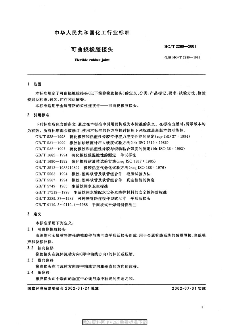 【產(chǎn)品標(biāo)準(zhǔn)】HG/T 2289-2001 可曲撓橡膠接頭