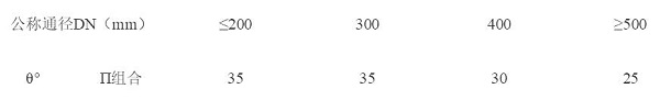 (4)管子直徑越大時(shí),θ應(yīng)越小,本公司規(guī)定了它的極大值(見表四),希望算出的θ值不超過(guò)極大值。